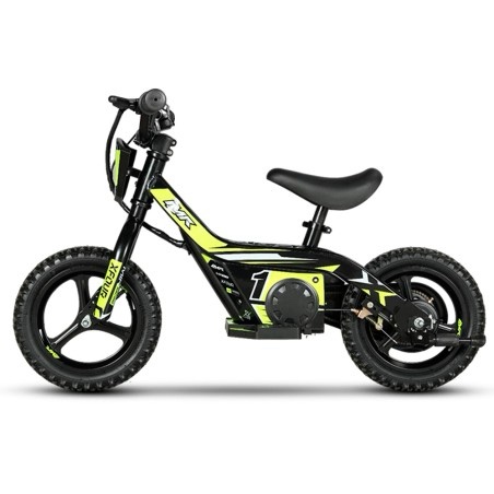 Espectacular! La bici eléctrica de moda entre los más peques! Disfruta de su potencia de 100w y su batería de Litio 24V. Velocidad máxima de 12 a 15km/h y autonomía de entre 10km y 15km. Llantas de 12 pulgadas mini y cómodo encendido eléctrico por boton. ¡Tiempo de carga entre 1 o 2 horas! Freno trasero mecánico y altura del asiento al suelo de 40 a 50cm (regulable) ¡Edad recomendada entre 3 y 5 años!