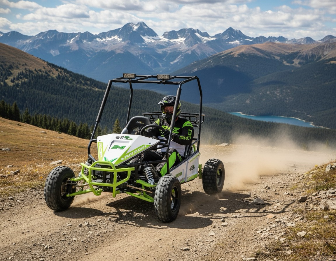RAZOR es un buggy biplaza de alto rendimiento, diseñado para uso recreativo y deportivo en terrenos ásperos. Este modelo incorpora un motor de combustión 4 tiempos, de 150cc, que ofrece una potencia máxima de 5.3 KW a 7500 rpm, garantizando un rendimiento potente y eficiente.