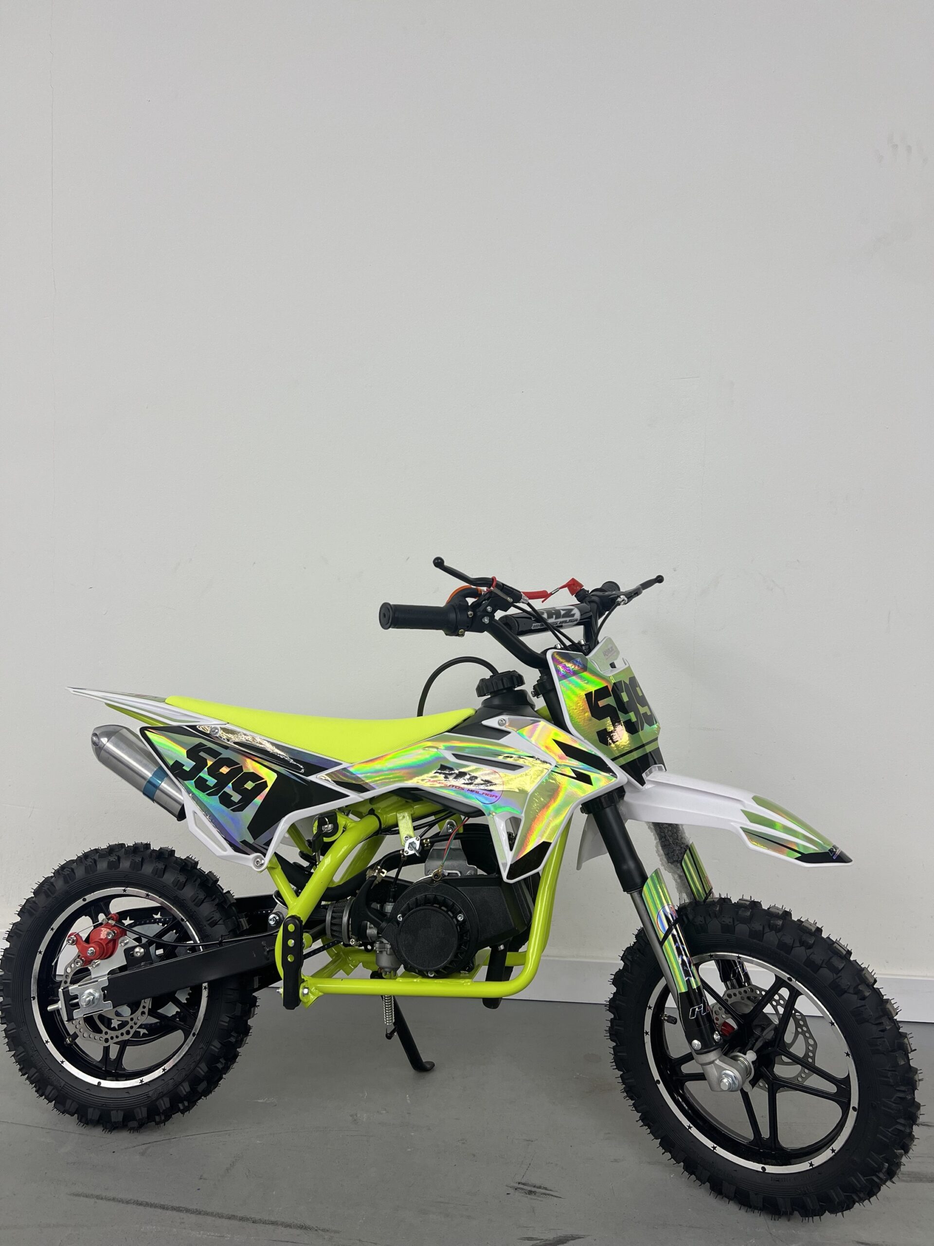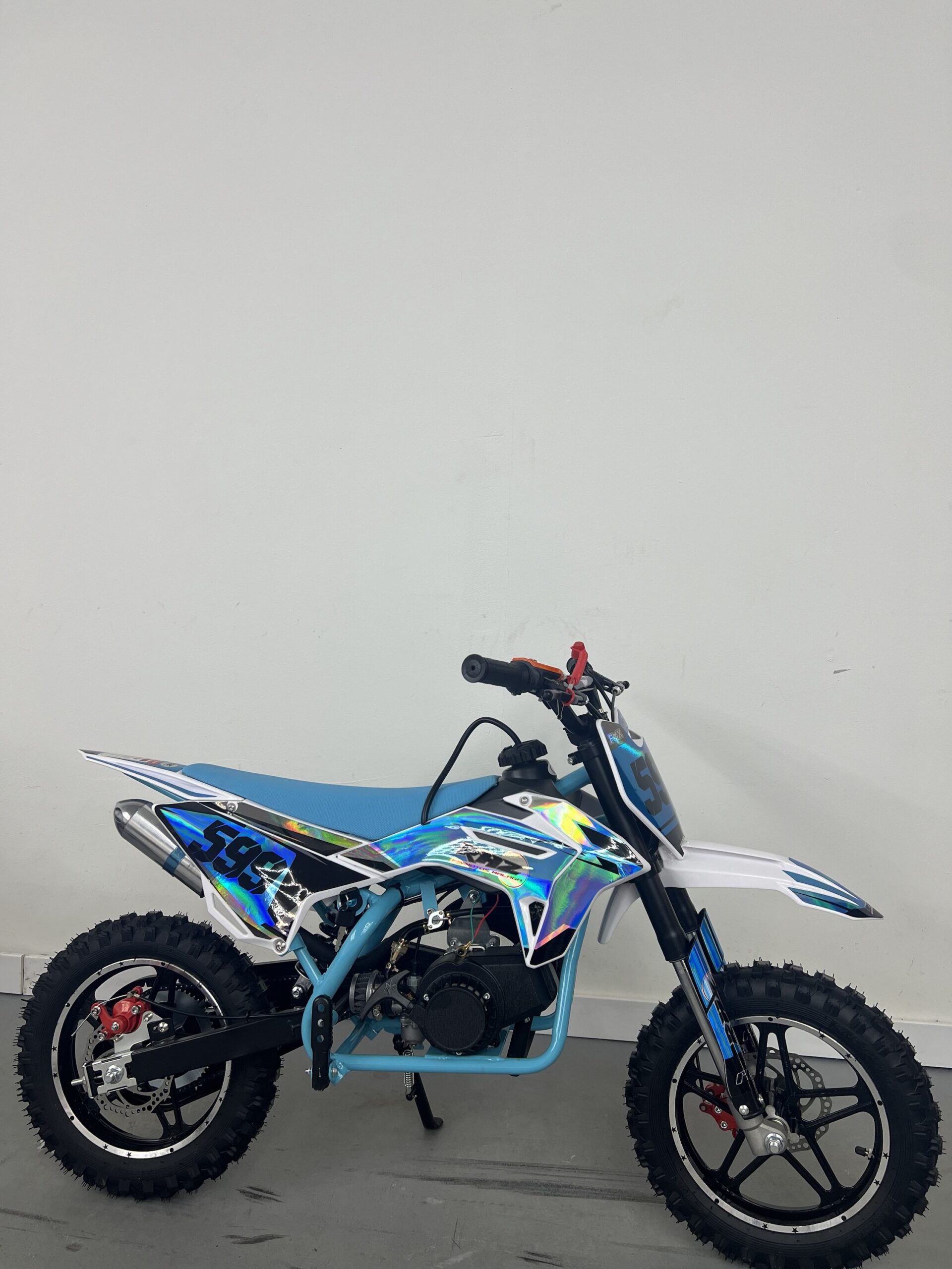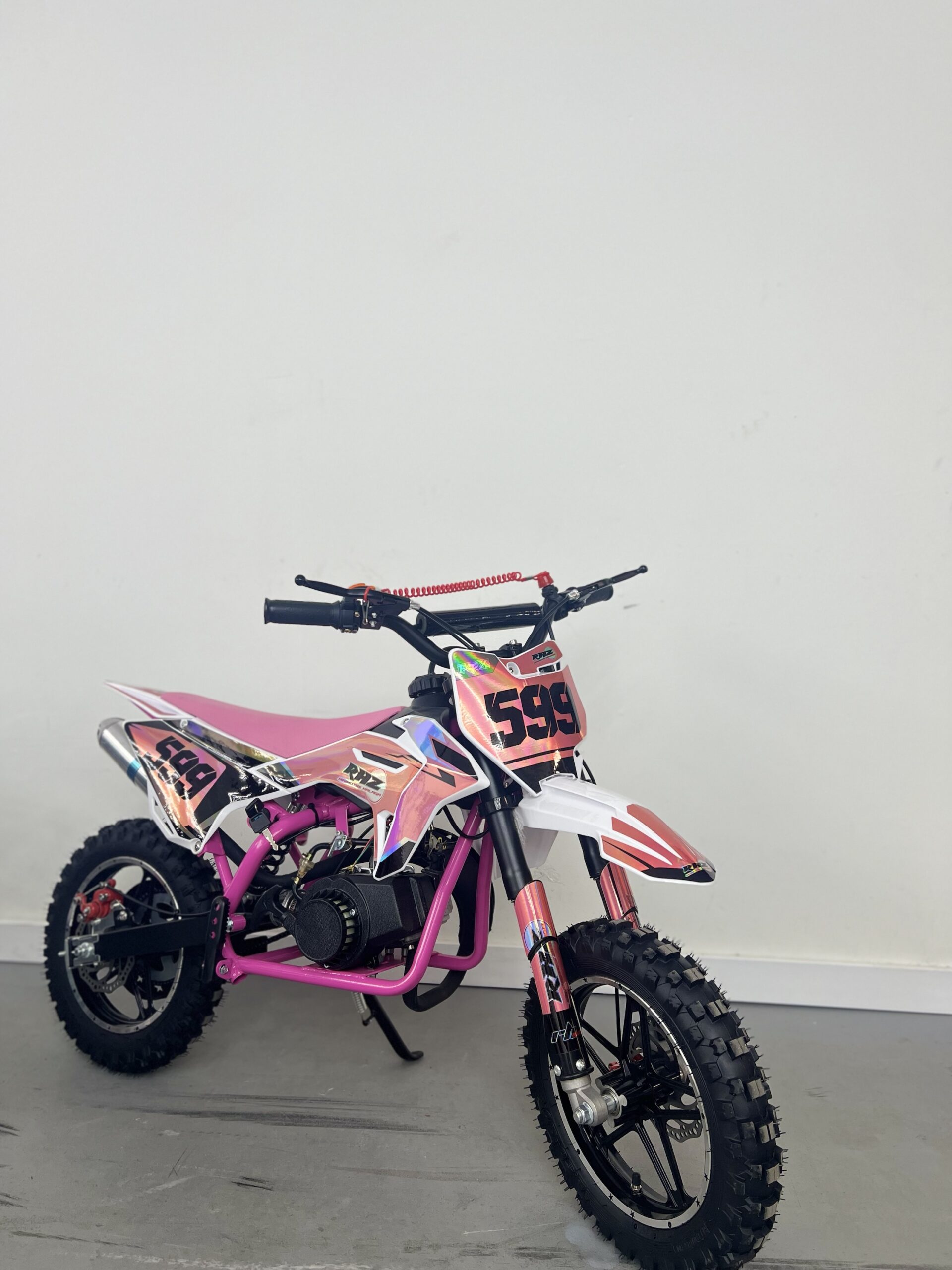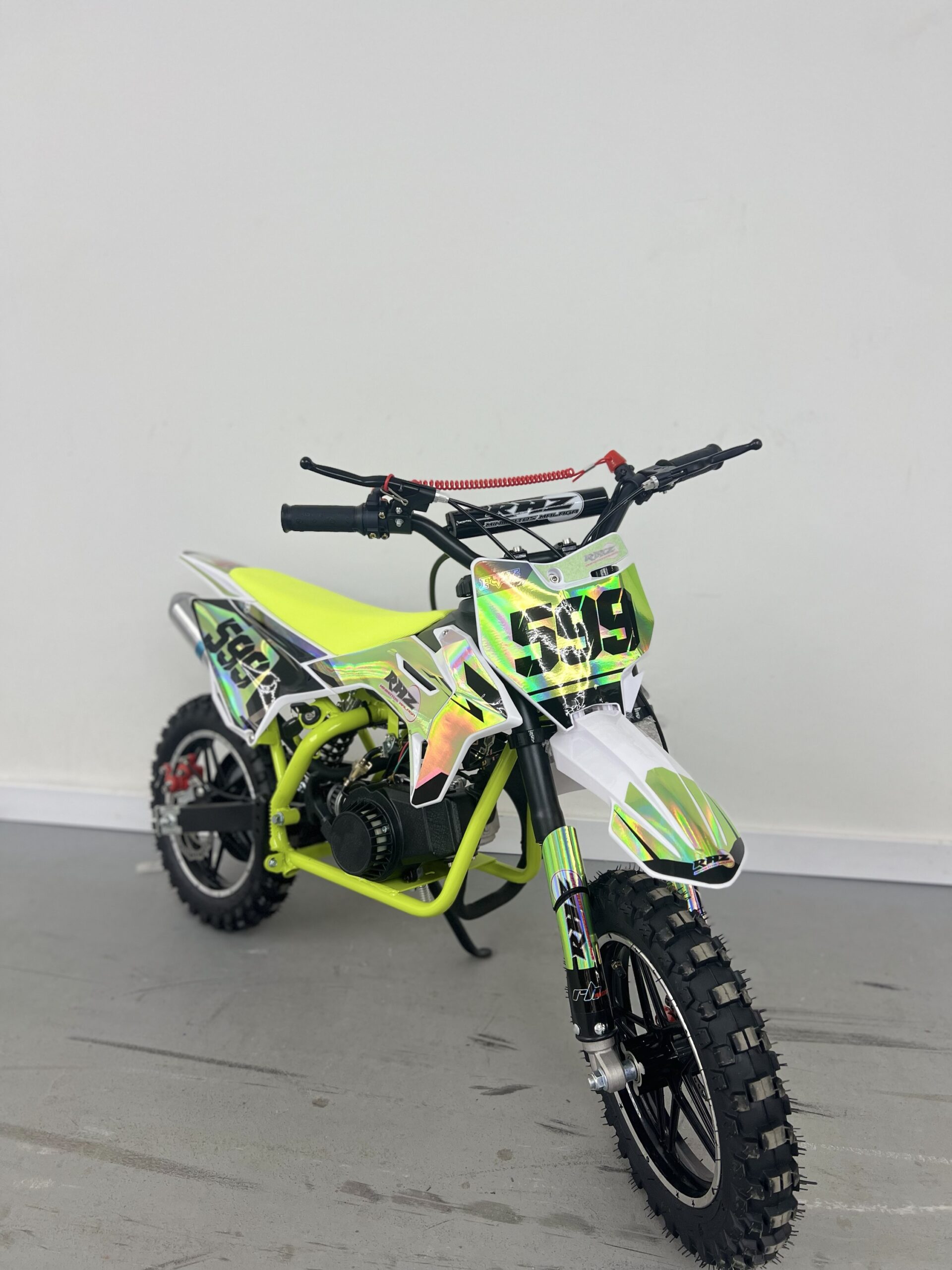 Nueva espectacular mini Cross 49 c RHZ modelo nuevo para el 2026 con un nuevo diseño de Pegatinas holográficas una mejora de chasis y horquillas y un diseño aerodinámico